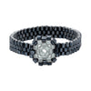 Anillo en forma de diamantes, tejido a mano con cuentas de cristal color negro y aqua