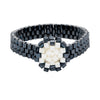 Anillo en forma de diamantes, tejido a mano con cuentas de cristal color negro y rosa