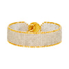 Tejido en telar con cuentas de cristal con chapa de oro o plata y colores.