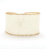 Tejido en telar con cuentas de cristal con chapa de plata.