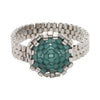 Anillo en forma de diamantes, tejido a mano con cuentas de cristal con chapa de oro blanco y aqua