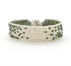Tejido en telar con cuentas de cristal de colores.